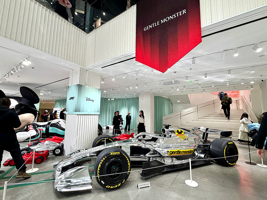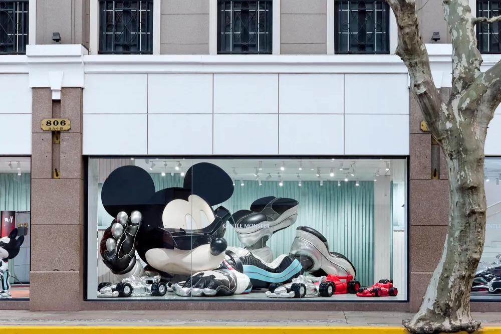 其中迪士尼是第一次和 GENTLE MONSTER 合作,后者在上海和首尔都打造了限时空间。在淮海中路的 GENTLE MONSTER HAUS NOWHERE 一层进门就是为这次三方联名打造的特别装置,赛车和巨型米奇都特别好合照出片。